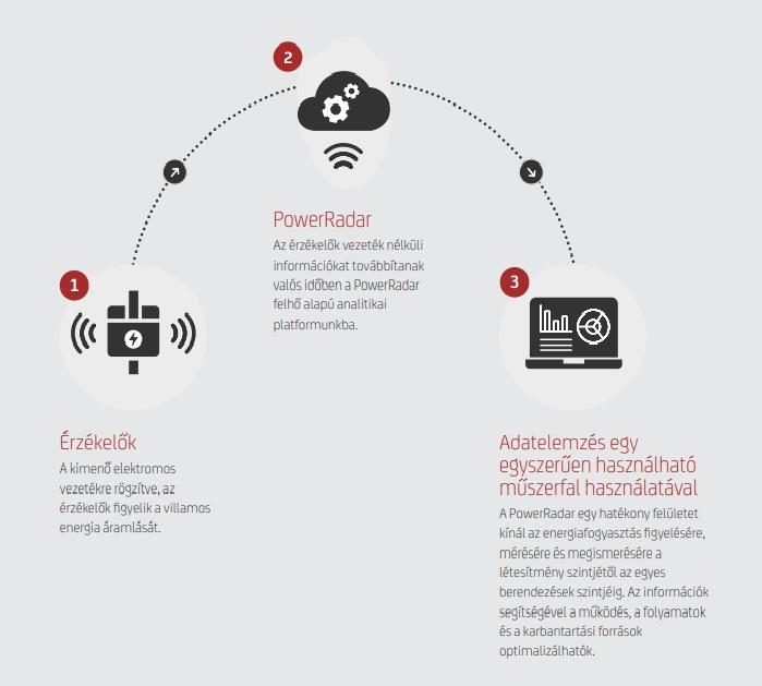Az üzleti életben a tudás hatalom. Ez az energia esetében sincs másképp: minél többet tud az energiafelhasználás módjáról, annál jobban képes gazdálkodni vele. Az energiát használó berendezések figyelése azonban sokkal több információt képes szolgáltatni, mint a berendezések által felhasznált energia mennyisége. A vezeték nélküli érzékelők adatokat továbbítanak a felhő alapú platformba a felhasználás figyeléséhez, a teljesítmény elemzéséhez, az esetleges karbantartást igénylő problémákra utaló jelek érzékeléséhez, az állásidő megelőzéséhez, az energiafelhasználás optimalizálásához és információkkal szolgálnak olyan folyamatokról, amelyek segíthetnek a berendezések teljesítményének növelésében.