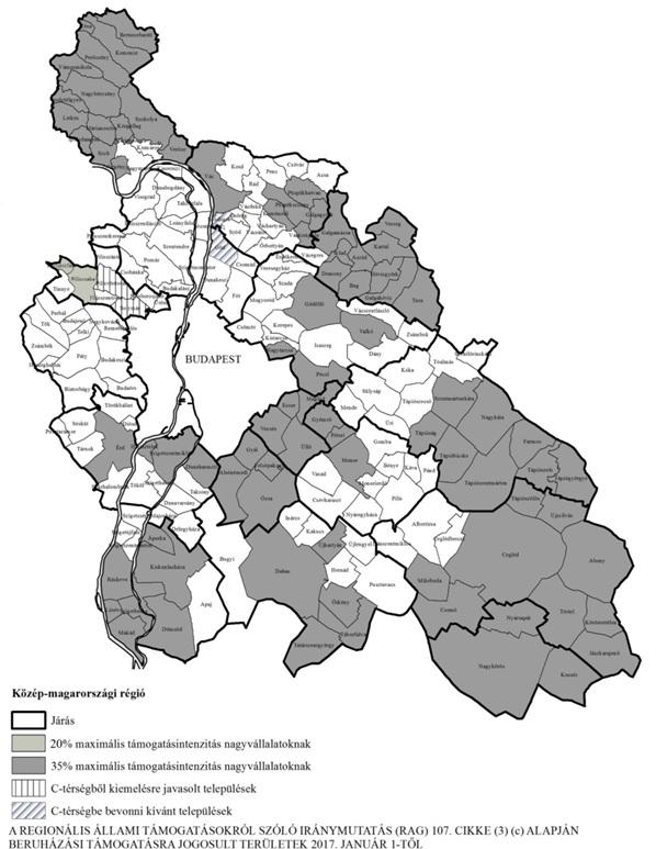 - Közép-Magyarország régió kormányrendeletben meghatározott támogatható településein 35 százalékának,