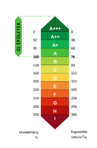 Követelménye: 76 KWh/m²a