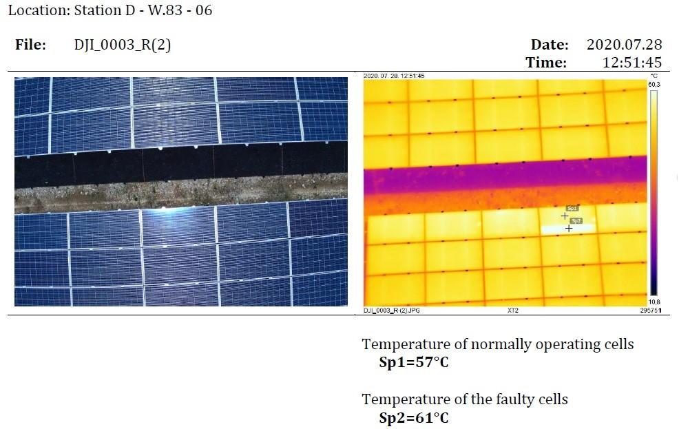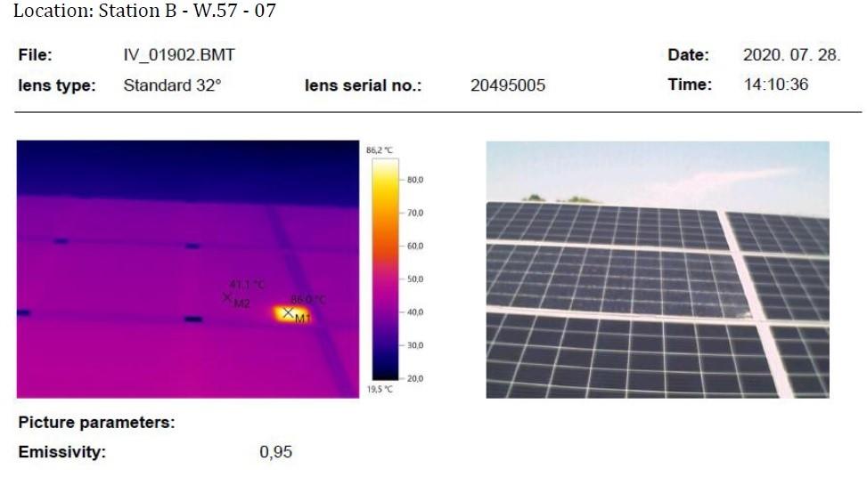 A felmérés során készített fotókat szoftveresen feldolgozzuk és egy nagy felbontású összevágott képet kapunk az egész területről. Az összevágott kép alapján meghatározhatók a tartósan hibás cellák, ahol hot-spot hatás lép fel. Azon panelekről ezután további elemzéseket végzünk a FlirTools nevű hőkép elemző szoftverrel, mely által pontos adatok kaphatók hot-spotok okozta hőmérsékletkülönbségekre vonatkozóan