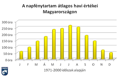 Magyarországon napfényes órákban legszegényebb időszak a december, míg a maximális napfénytartam júliusban alakul ki.