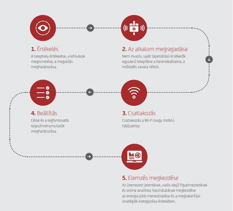 Az energiával kapcsolatos információkat nyújtó megoldásunk lehetővé teszi az energiafelhasználás vizualizálását. A saját tápellátású, vezeték nélküli érzékelők valós időben továbbítják az energiát használó berendezések és készülékek adatait a felhő alapú analitikai platformba. Az adatokkal nyert információk segítségével optimalizáljuk a teljesítményt, foglalkozunk a berendezések potenciális meghibásodásával még azok bekövetkezte előtt, és csökkenthetjük az energiafelhasználással kapcsolatos elégtelenségeket és pazarlást.