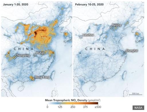 A szerző megállapításai szerint néhány városban és régióban a légszennyező anyagok és az üvegházgázok szintje jelentős csökkenést mutat, mivel a koronavírus életünk minden területét érinti, beleértve a közlekedés minden formáját és az ipari működést.