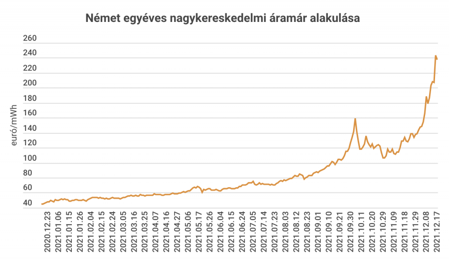 Az elmúlt két évet vizsgálva látszik, hogy az áram ára milyen jelentősen drágult Európában, azon belül is Németországban. Míg a benzin lakossági ára 15-20 százalékkal, addig az áram idén elképesztő mértékben, több mint négyszeresére emelkedett.